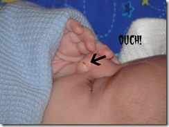 .: From Head to Toe- Your skin is one big flake right now! Your scalp, forehead & ears in particular. I did learn that putting lotion on your scalp did NOT make your hair more greasy, if anything it make it less?!?!?! We had you on Zyntac for reflux, but I didn’t like how it was working, if it was at all?! So, I went to what I knew worked for Aidan…Dr. S!!! (chiropractor) We went on 4 visits last week and WOW, what a different baby. You’re pooing more regular, taking more restful naps, and just generally more content. Dr. P said you still have quite and outtie belly button and we may need to look at getting that fixed down the road.
